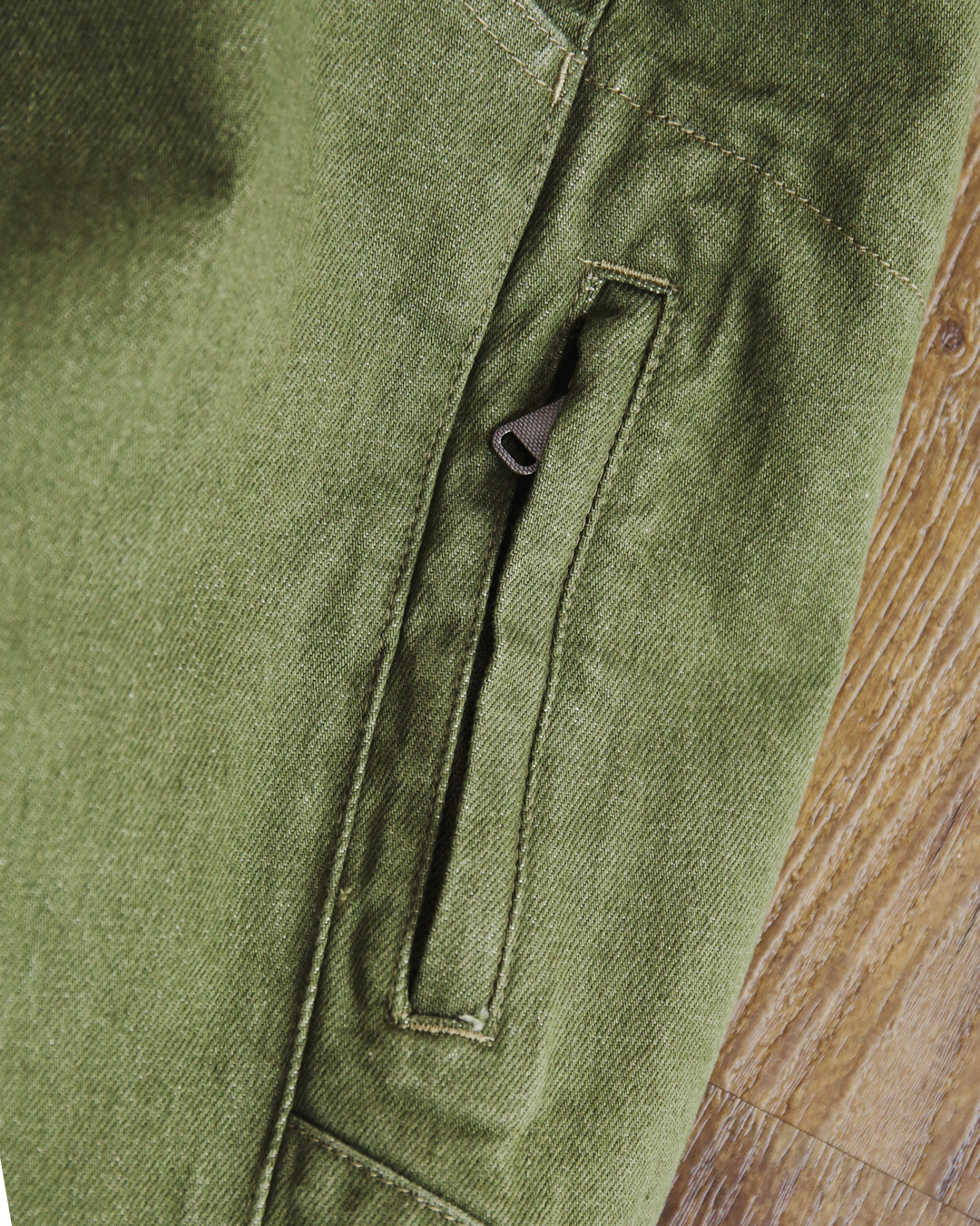 ジップポケットや背面の隠しポケット、オリジナルスナップボタン等、細部まで拘った作り