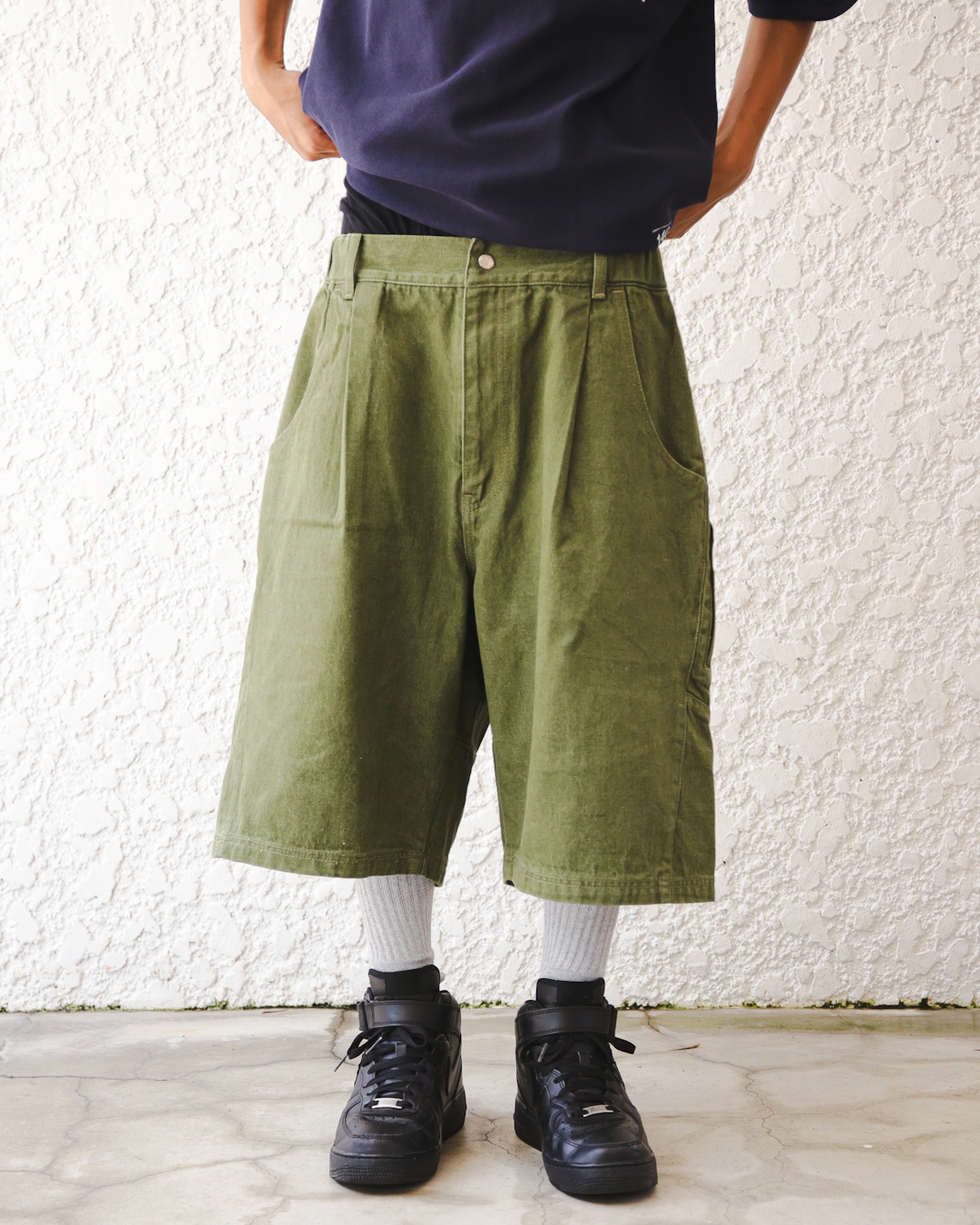 オーバーサイズの膝下デニムショーツ