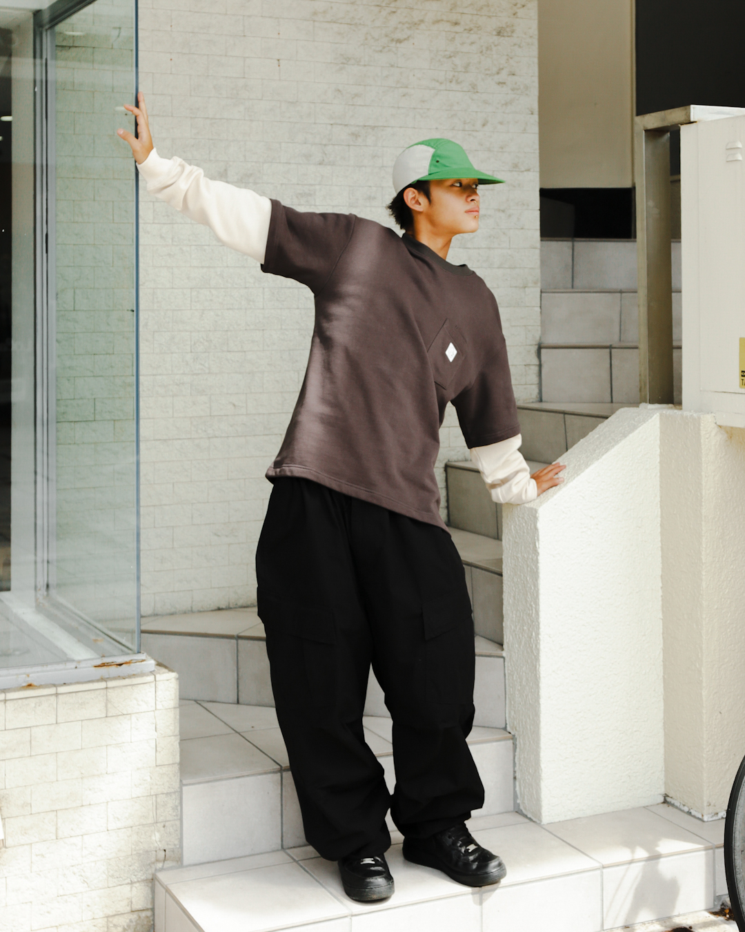 スウェットボディ×ワッフルスリーブの2レイヤーデザインL/S