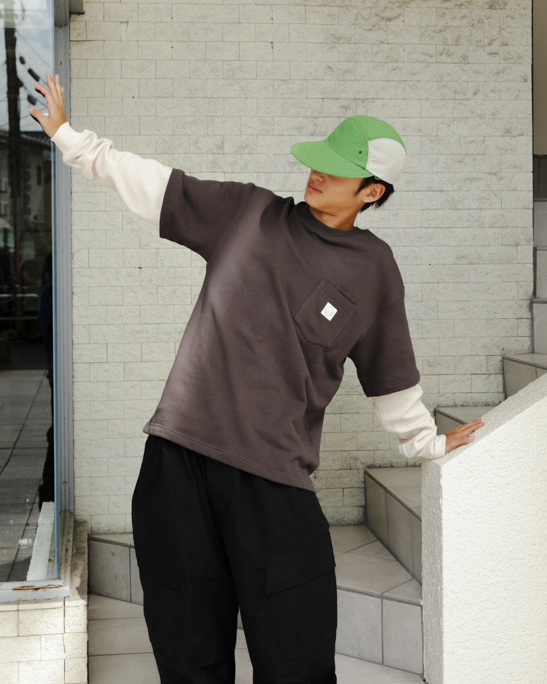 WAFFLE SLEEVE DOUBLE POCKET L/S TEE