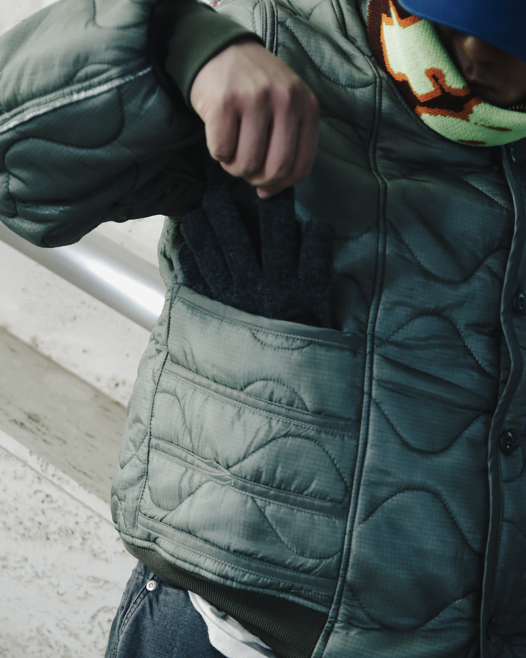 軽量なキルティグ生地は中綿入りで保温性も抜群