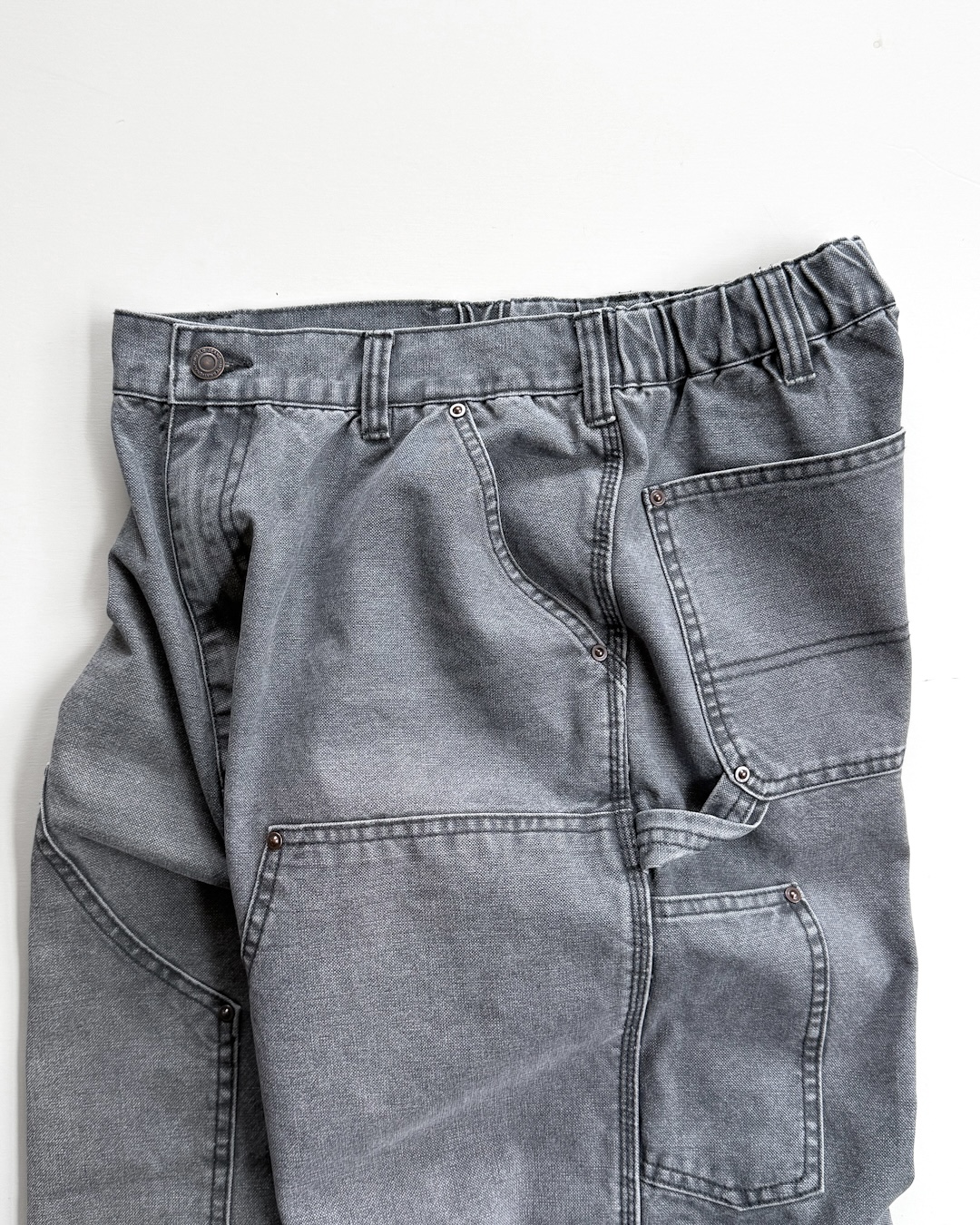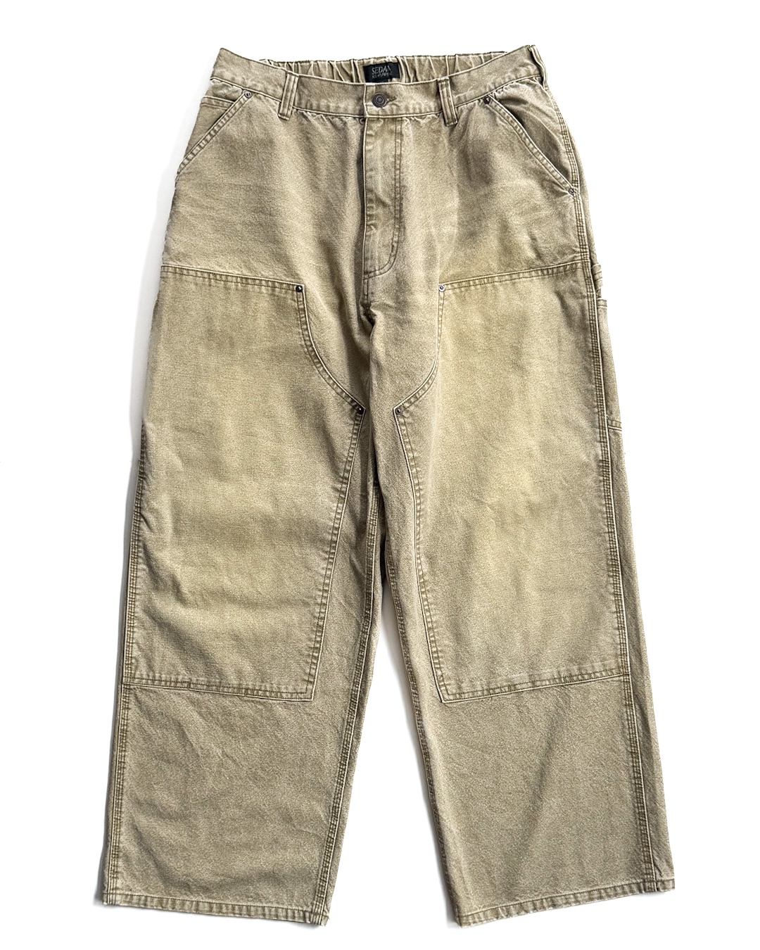コットンキャンバス素材にウォッシュ加工を施したダブルニーパンツ
