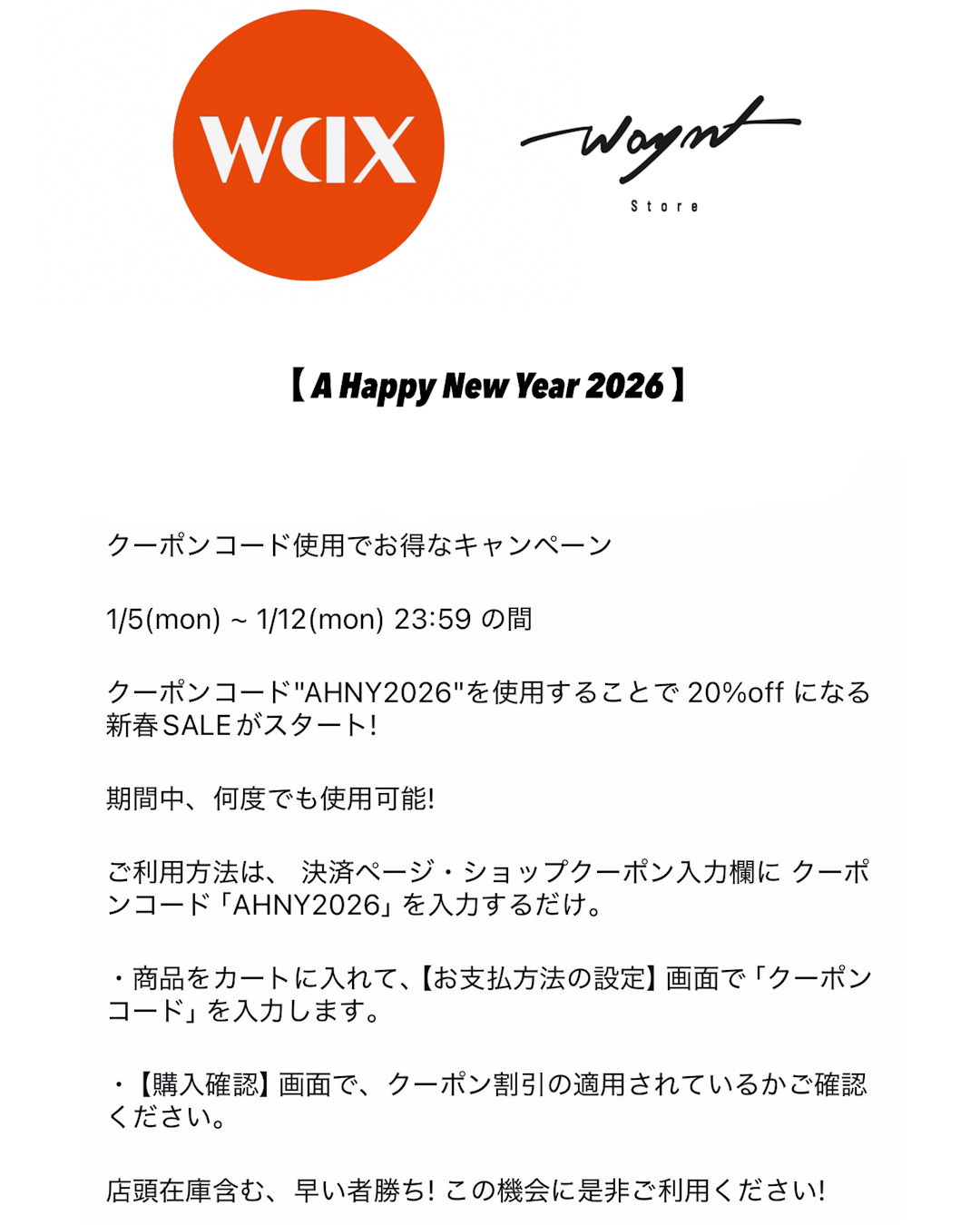 そう、いつだってそれは突然訪れるもの。 嬉しいことや、悲しいことも。 全てが「パッ」と目の前に急に現れるから、僕らはそれらに一喜一憂する。 出張ウェイントストア wax clothing内店 も今日で閉店と...